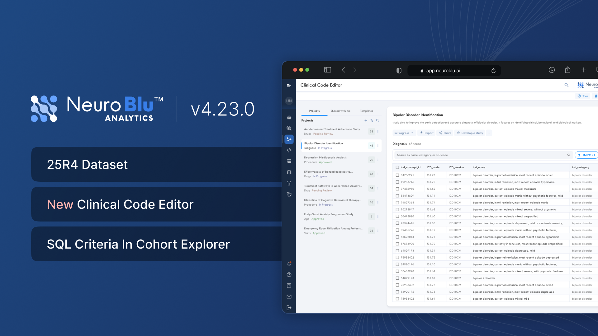 Designed by a team of scientists, clinicians, and industry experts, NeuroBlu's robust tools drive Real-World Evidence generation with unparalleled ease.